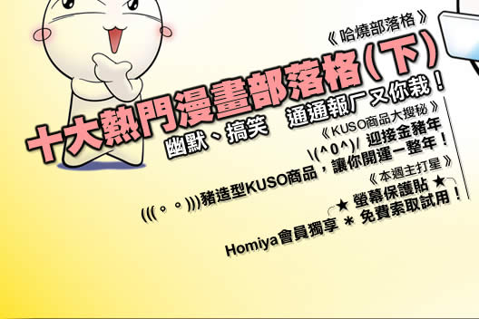 | 想要逃脫生活的無奈與現實?簡單的線條與著色讓你了解夥伴的重要,更重要的是漫畫中的奇幻世界,人活著就是要有夢想;夢想是很重要的!一起與Homiya放鬆一下,體會平凡生活中的異想世界! |