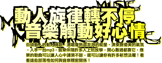 一個政大財政的大學新鮮人,興趣聽音樂;看音樂雜誌、看電視沒有一個是跟音樂無關的,專門提供音樂資訊的園地,特別是西洋音樂的愛好者一定要來瞧瞧!( 圖片來源:LOVE★MUZIK )